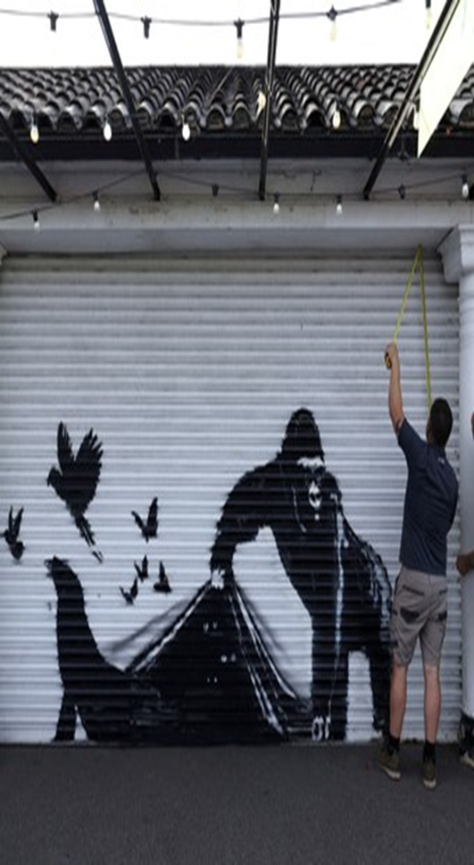 El gorila de Banksy abre una puerta del Zoológico de Londres, para que los animales salgan y vuelen a la libertad. Me parece que es una de las explicaciones que podríamos dar a este grafiti, que cierra una serie  de pinturas enfocadas a los animales.